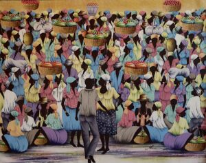 Blanc’s expressive brushstrokes and warm tones bring movement and light to the canvas, immersing viewers in the rhythm of everyday commerce and connection. A vibrant work that reflects both the artist’s mastery and the enduring beauty of Haitian culture.
